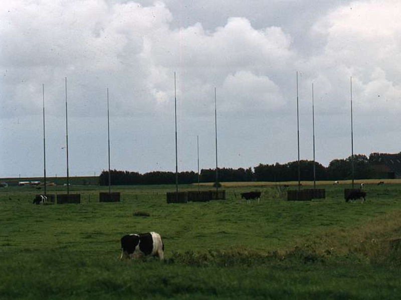 Zur Peilung von Funksignalen im Mittel- und Grenzwellenbereich wurde ein Antennensystem aus acht bzw. neun kreisförmig angeordneten Stabantennen eingesetzt.